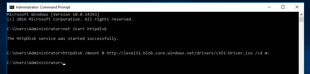 httpdisk /mount 0 http://level51.blob.core.windows.net/drivers/LV51-Driver.iso /cd m: