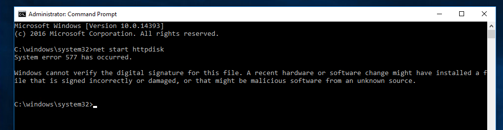ซึ่งเครื่องเราก็จะปลอดภัยจาก Kernel Driver ที่ไม่ได้ Sign ตามเดิม และ Httpdisk ก็จะไม่สามารถใช้งานได้ ต่อให้ตั้งเป็น Start แบบ 1 ก็ตาม