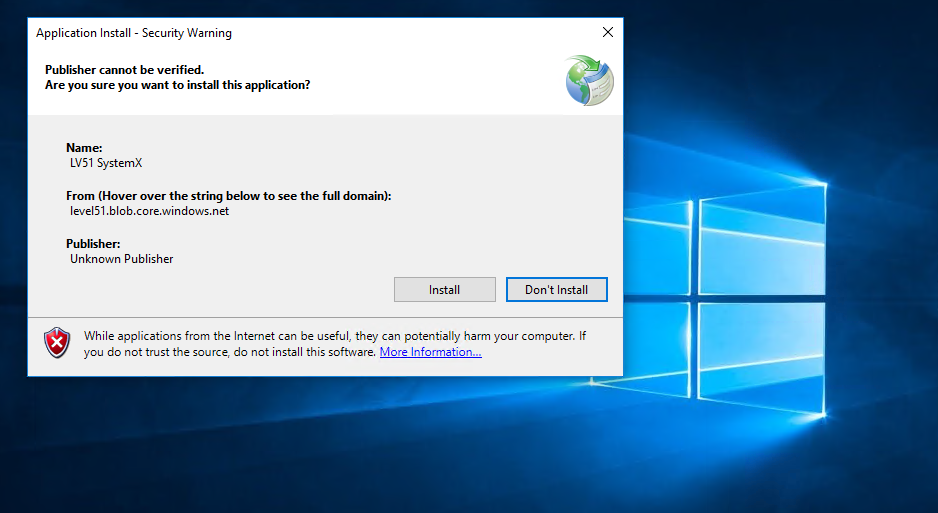 จากนั้นกดปุ่ม Install ในหน้าจอที่แสดงขึ้นมา สังเกตว่า จะมีคำเตือนเรื่องที่เป็น "Unknown Publisher" เนื่องจากเรายังไม่มี (ไม่ได้ซื้อ) Code-Signing Certificate ครับ มันก็จะขึ้นเตือนว่า ระวังนี้ ไอ้นี่มันใครก็ไม่รู้