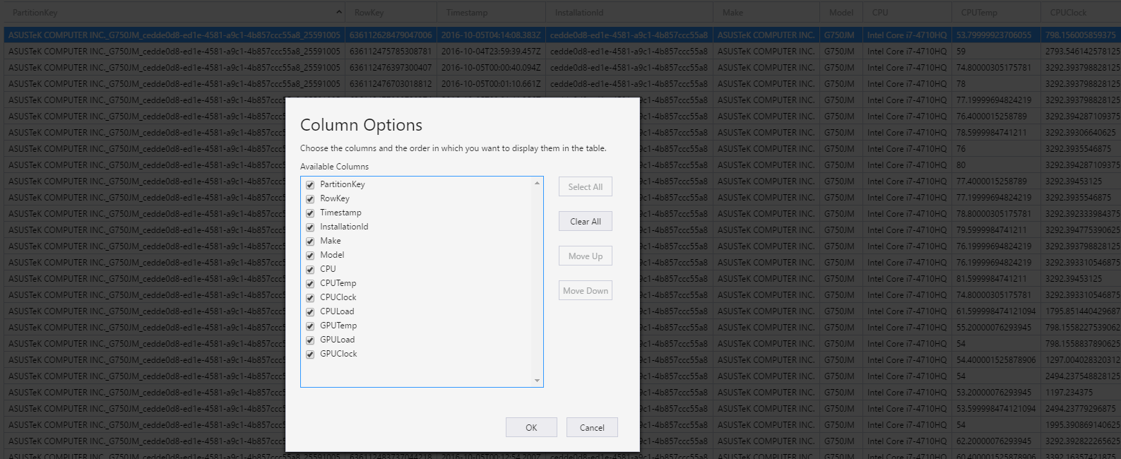 - Save To Cloud : โปรแกรมจะส่งข้อมูลของ Sensor ต่างๆ เซฟลงไปใน Azure Table Storage ของ LEVEL51 อนาคตน่าจะมีหน้าจอสำหรับดูสถิติย้อนหลังได้ แต่ปัจจุบันข้อมูลนี้ยังไม่ได้ใช้ทำอะไรครับ สามารถปิดได้ และไม่มีข้อมูลที่สามรถบอกได้ว่าคุณคือใครเก็บอยู่ โดยผมใช้ "Installation Id" ซึ่งจะเป็น GUID ที่สร้างขึ้นมาจากฟังก์ชั่น Guid.NewGuid() เป็นเลขกับตัวอักษรที่สุ่มออกมาครับ ถ้าติดตั้งใหม่ ก็จะได้ GUID ใหม่ ไม่สามารถอ่านข้อมูลเดิมได้อีก ว่าอย่างนั้น